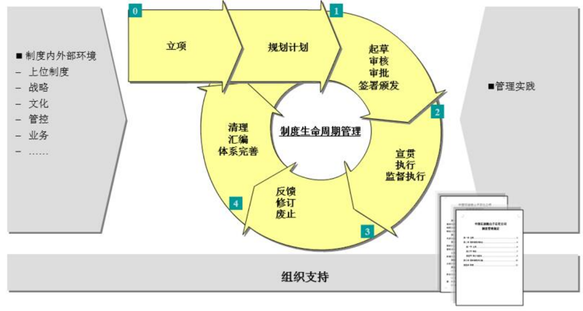 6、對形成的制度體系進(jìn)行宣貫和推廣,建立制度全生命周期管理流程,實(shí)現(xiàn)制度的自我優(yōu)化與創(chuàng)新。