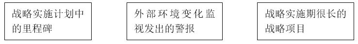 3. 戰(zhàn)略實施期很長的戰(zhàn)略項目。對于那些戰(zhàn)略實施期很長的戰(zhàn)略項目,盡管還沒有到達里程碑,而且也沒有重大變化因素發(fā)生,但是由于戰(zhàn)略實施經(jīng)過了很長時間(一般為一年以上),在這個時期內(nèi),由于企業(yè)內(nèi)外環(huán)境條件的變化,會產(chǎn)生一些新的影響因素,因而也要對其進行全面評審,以促使戰(zhàn)略實施者及早地、自覺地進行自我糾偏。