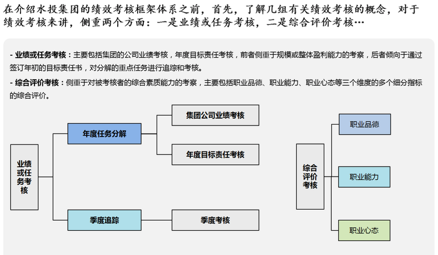 根據(jù)集團(tuán)戰(zhàn)略目標(biāo),制定和優(yōu)化集團(tuán)和所屬子公司組織和個(gè)人績(jī)效管理體系,通過(guò)建立一套客觀科學(xué)、公平公正的績(jī)效考核辦法 ,提升集團(tuán)管理效率。