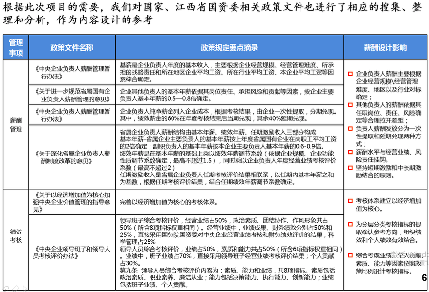 下屬單位領(lǐng)導(dǎo)班子考核薪酬設(shè)計(jì)中,更加注重對(duì)于國(guó)家以及當(dāng)?shù)氐膰?guó)資等在國(guó)企考核管理方面的政策要求,同時(shí)充分借鑒漢哲國(guó)資案例庫(kù)的案例,對(duì)下屬單位進(jìn)行了分類考核的設(shè)計(jì)。
