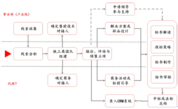 針對(duì)個(gè)細(xì)分模塊,建立基于市場(chǎng)的流程運(yùn)行邏輯,如單一項(xiàng)目線索跟進(jìn)與成交的業(yè)務(wù)運(yùn)作邏輯如下: