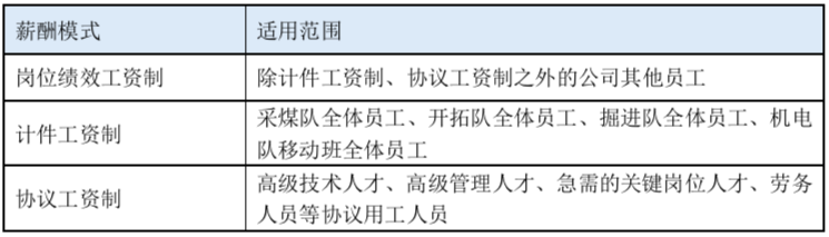 公司的薪酬模式分為三類:崗位績效工資制、計件工資制、協(xié)議工資制,各類薪酬模式的適用范圍如下: