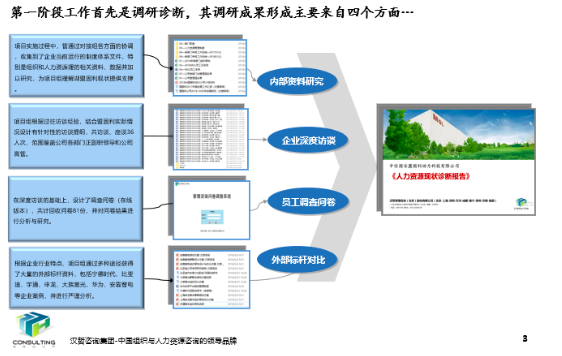 項(xiàng)目原計(jì)劃第一階段進(jìn)行戰(zhàn)略澄清,旨在通過(guò)調(diào)研、對(duì)標(biāo)與管理診斷,發(fā)現(xiàn)并剖析組織存在的根本問(wèn)題,通過(guò)對(duì)戰(zhàn)略的梳理與澄清,明確未來(lái)的管理提升日程表,指明方向并明確優(yōu)先次序。實(shí)際實(shí)施過(guò)程中,客戶核心領(lǐng)導(dǎo)認(rèn)為新能源汽車(chē)行業(yè)政策的不確定性,公司戰(zhàn)略很難明確,因此項(xiàng)目組選擇了通過(guò)內(nèi)部資料研究、企業(yè)深度訪談、員工調(diào)查問(wèn)卷、外部標(biāo)桿資料對(duì)比,政策研究等維度,對(duì)其戰(zhàn)略、組織、人力資源管理、組織文化等進(jìn)行全面診斷,發(fā)現(xiàn)問(wèn)題并提出改進(jìn)的思路。