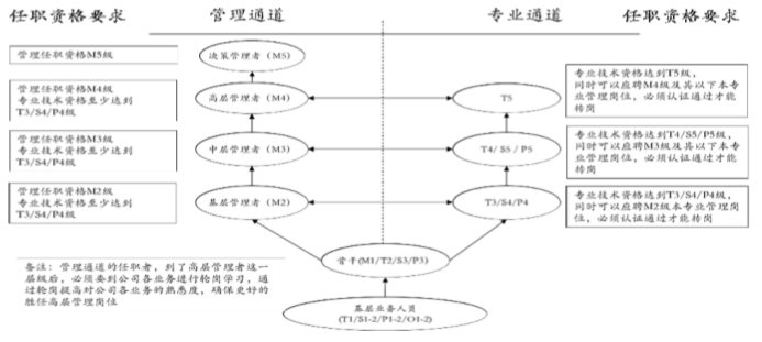 為了拓寬員工職業(yè)發(fā)展通道,設計不同職業(yè)發(fā)展通道之間的接口具體如下圖所示。
