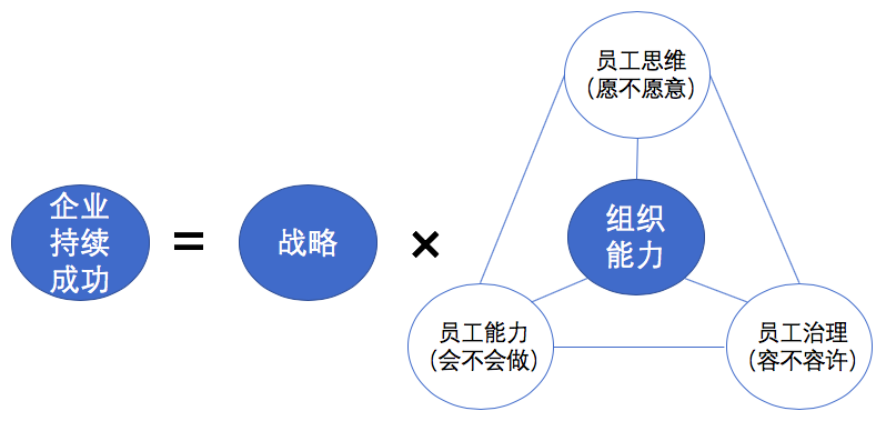 雖然以上這些名詞在任何組織都會(huì)在存在,但僅僅比較不同組織間協(xié)作的意愿、共同的目標(biāo)和信息聯(lián)系的水平差異,似乎并不能完全的解釋組織之間發(fā)展差異性,因?yàn)橘Y金、技術(shù)、設(shè)備等生產(chǎn)要素、行業(yè)的周期性與競(jìng)爭(zhēng)情況等等,都會(huì)影響組織發(fā)展的情況,當(dāng)然,還有一點(diǎn)是不容忽視的既是人的因素,主要包含員工的能力水平、心智狀態(tài)和領(lǐng)導(dǎo)者團(tuán)隊(duì)的水平。人的因素在企業(yè)中的就猶如加速劑一樣,對(duì)企業(yè)的發(fā)展水平起著關(guān)鍵的調(diào)節(jié)作用,能力水平直接影響著業(yè)務(wù)能不能做,心智狀態(tài)直接影響著組織穩(wěn)不穩(wěn),能不能做到上下同欲,持續(xù)輸出,領(lǐng)導(dǎo)者團(tuán)隊(duì)則是將人才能力和心智直接與組織目標(biāo)銜接起來(lái)的直接負(fù)責(zé)人。