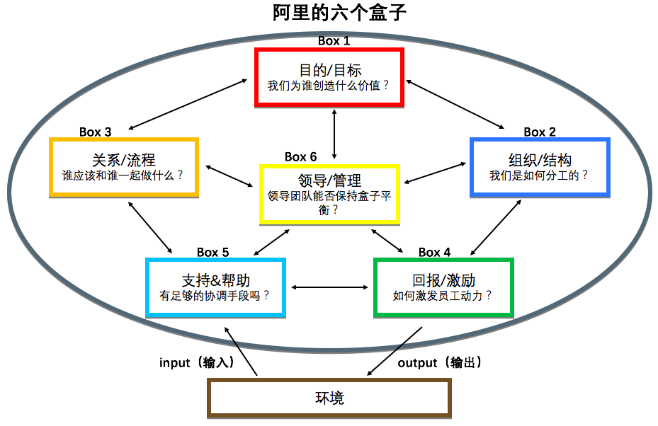 再如麥肯錫的7S模型和阿里的六個(gè)盒子: