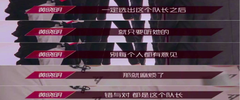 節(jié)目組聘請了三位具有相當(dāng)影響力的女團(tuán)專家作為評委,同時邀請“黃教主”作為主持人。站在以上四位“專家”的角度上,對成為團(tuán)隊(duì)leader應(yīng)該具備的能力素質(zhì)也會有自己不同的看法和意見。筆者從中也能提取相應(yīng)的領(lǐng)導(dǎo)力要素。
