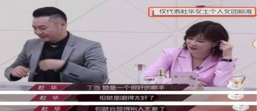片段2:身為專業(yè)唱將的丁當(dāng),竟因?yàn)?ldquo;唱的太好”的原因,被杜華打了低分。杜華給出的解釋是:“她的能力太突出,會顯得其他人太差,所以她個人發(fā)展會比成團(tuán)要好。”