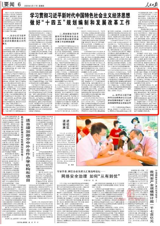 學習貫徹新時代中國特色社會主義經(jīng)濟思想 做好“十四五”規(guī)劃編制和發(fā)展改革工作