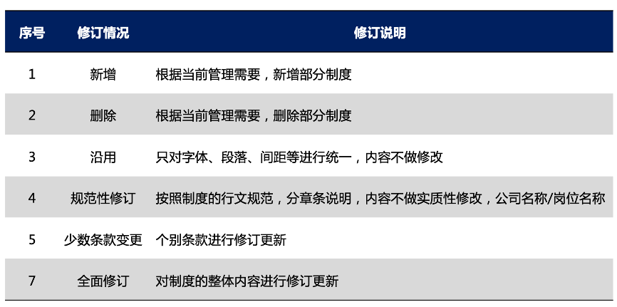 表1 各項(xiàng)制度修訂情況說(shuō)明