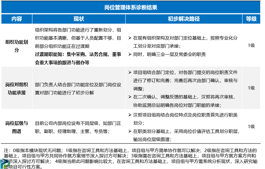 (2)崗位職責(zé)承接:部分崗位對(duì)部門的職責(zé)承接不到位,且不同層級(jí)的崗位承擔(dān)的職責(zé)無差異,如資深崗與普通崗。