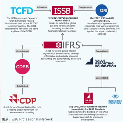 1、我國企業(yè)ESG披露主要以自愿披露為主,披露框架多借鑒國外。信息披露一般分兩類,一類是強制披露,另一類是自愿披露。我國企業(yè)披露目前無強制要求,以自愿披露為主。另外,信息披露要遵循一定的框架,ESG披露框架較多,目前國際上主流的ESG披露標準主要有GRI、ISSB、SASB、TCFD等(如下圖),而我國企業(yè)尚未形成統(tǒng)一的ESG信息披露框架,大部分企業(yè)的ESG信息披露均是在國外主流框架基礎(chǔ)上進行。
