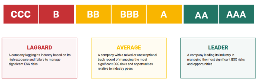 1、ESG至今并沒有全球統(tǒng)一的定義和評級標準。各評級體系往往會基于GRI、SASB等的ESG披露標準,根據(jù)MSCI或申萬等行業(yè)分類選取不同的指標并構(gòu)建方法論,最終形成評價體系。以用的最多的MSCI為例,MSCI ESG評級模型指標體系主要由3大范疇(Pillars)、10項主題(Themes)、35個ESG關(guān)鍵議題(ESG Key Issues)和上百項指標組成。通過一系列企業(yè)自身披露的數(shù)據(jù)以及其它替代數(shù)據(jù)進行分析,最終確定企業(yè)評級。MSCI企業(yè)評級總共7級,最高為AAA,最低為CCC(如下圖)。