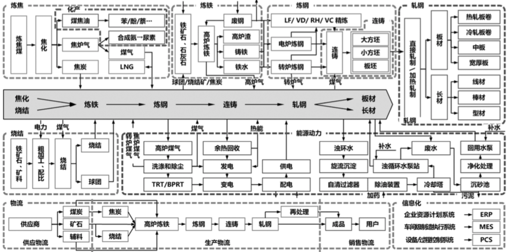 一、開(kāi)展工藝流程梳理分析。不同的鋼鐵企業(yè)具有多種業(yè)務(wù),一些只到煉鐵,一些只從軋制開(kāi)始。因此,各業(yè)務(wù)間的配合,包括前端產(chǎn)品與后端產(chǎn)品的匹配等,是分析鋼企工藝流程的關(guān)鍵要素。筆者所咨詢的鋼企,由10個(gè)業(yè)務(wù)板塊構(gòu)成的涵蓋全產(chǎn)業(yè)鏈的煉鋼企業(yè)。其工藝流程分析結(jié)果如下圖所示: