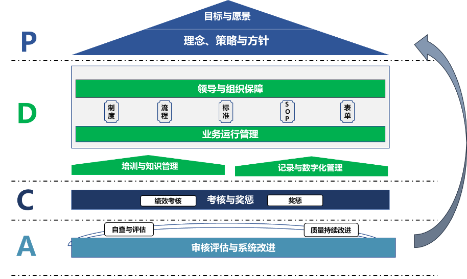 是體系的出發(fā)地,理念使員工起心動念,策略與方針是員工工作執(zhí)行的指引。理念、策略與方針深度融合公司企業(yè)文化及價值觀,既承接管理體系的目標(biāo)與愿景,又細(xì)化實(shí)現(xiàn)目標(biāo)的方法,是實(shí)現(xiàn)管理體系愿景與目標(biāo)的手段。