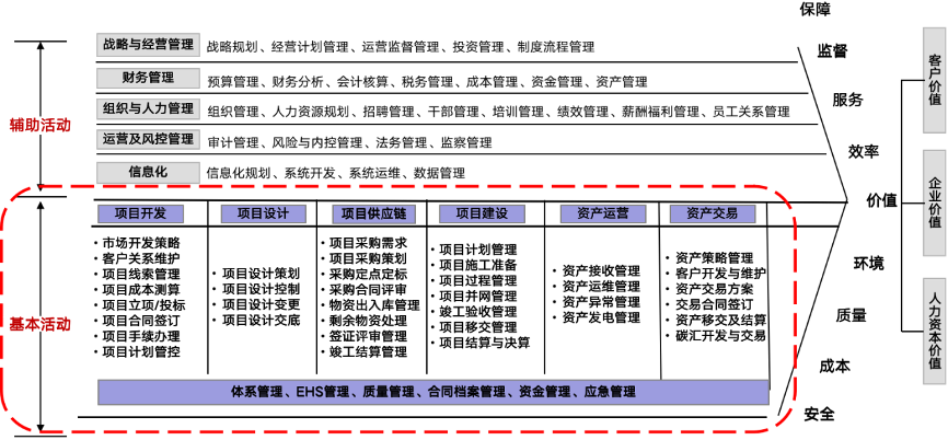 這些活動可分為基本活動和輔助活動,這些互不相同但又相互關(guān)聯(lián)的活動,構(gòu)成創(chuàng)造價值的過程,即企業(yè)價值鏈。以下圖1是某工程型企業(yè)的價值鏈: