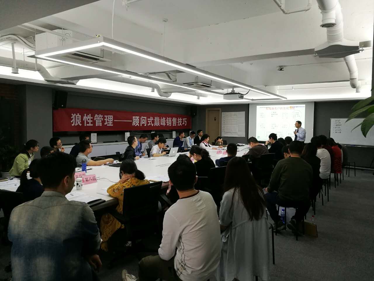 郭老師深入講授了在銷售工作對(duì)客戶經(jīng)理的要求、銷售精英成功的關(guān)鍵、土狼的三大特征、營(yíng)銷策略制定、顧問式營(yíng)銷流程、等五個(gè)模塊,課程綜合采用案例教學(xué)、問題討論、師生互動(dòng)等多種方式,對(duì)于如何開展顧問式營(yíng)銷與成就銷售精英,提供了全面的工作思路和系統(tǒng)實(shí)用的工作方法。