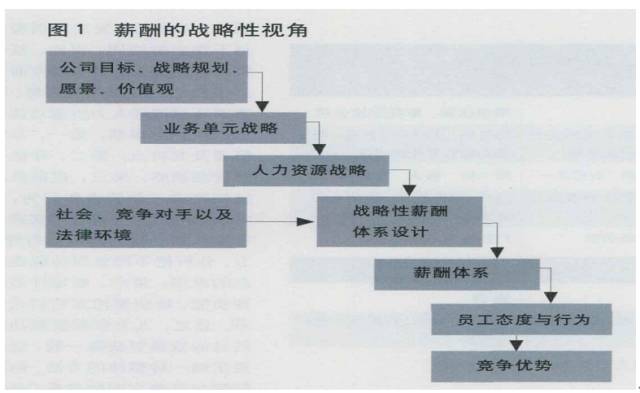 下圖中“薪酬的戰(zhàn)略性視角”就是從公司目標(biāo)、戰(zhàn)略規(guī)劃、愿景、價(jià)值觀等因素出發(fā)設(shè)計(jì)薪酬體系的邏輯發(fā)展過(guò)程:公司目標(biāo)與戰(zhàn)略規(guī)劃決定業(yè)務(wù)單元戰(zhàn)略,業(yè)務(wù)單元戰(zhàn)略決定人力資源戰(zhàn)略,人力資源戰(zhàn)略、社會(huì)環(huán)境、競(jìng)爭(zhēng)對(duì)手以及法律環(huán)境,是戰(zhàn)略性薪酬體系設(shè)計(jì)的輸入環(huán)節(jié)。企業(yè)的薪酬體系設(shè)計(jì),是否遵循了這一程序,我們需要進(jìn)行評(píng)估,以此來(lái)判斷薪酬體系與公司戰(zhàn)略以及人力資源戰(zhàn)略的一致性。