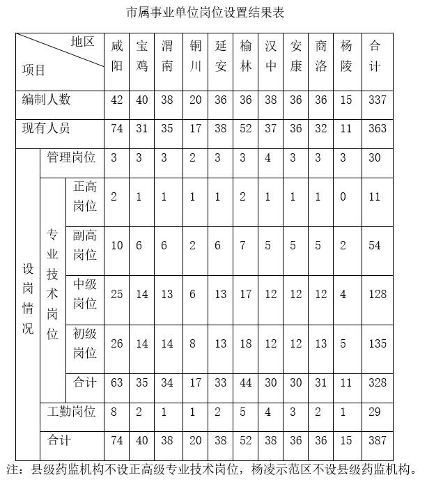 藥監(jiān)系統(tǒng)的事業(yè)單位崗位設(shè)置工作,歷時(shí)半年,全部完成崗位設(shè)置和審批工作,主要結(jié)果如下:96個(gè)事業(yè)單位中,除省屬信息培訓(xùn)中心外,全部確認(rèn)為以專業(yè)技術(shù)人員為主體,管理崗位和工勤技能崗位為輔。全系統(tǒng)共設(shè)崗1252個(gè),其中管理崗位89個(gè),專業(yè)技術(shù)崗位1048個(gè),工勤技能崗位115個(gè)。省、市、縣三級(jí)藥監(jiān)機(jī)構(gòu)各類崗位具體分布情況見(jiàn)下表: