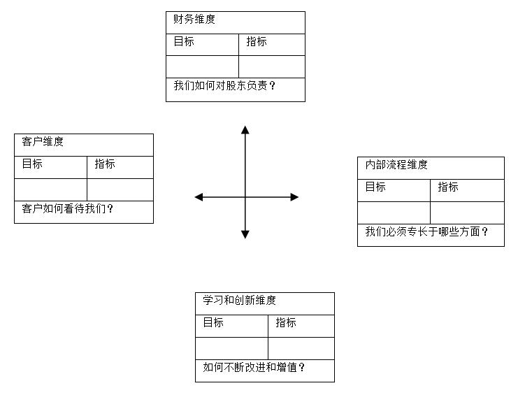 平衡計分卡是卡普蘭和諾頓在總結(jié)了十二家大型單位的業(yè)績評價體系的成功經(jīng)驗的基礎(chǔ)上提出的。平衡計分卡是一種戰(zhàn)略性人力資源管理思想和指導方法。平衡計分卡的倡導者認為在制定單位發(fā)展戰(zhàn)略目標時,不能只考慮財務指標,而應該考慮支撐單位財務指標實現(xiàn)的其他方面:關(guān)注客戶、業(yè)務流程、學習與成長等。由此,平衡計分卡考核指標可以從多個維度構(gòu)建,但是較為普遍的是從財務維度、客戶維度、內(nèi)部流程維度、學習和創(chuàng)新維度進行考慮。