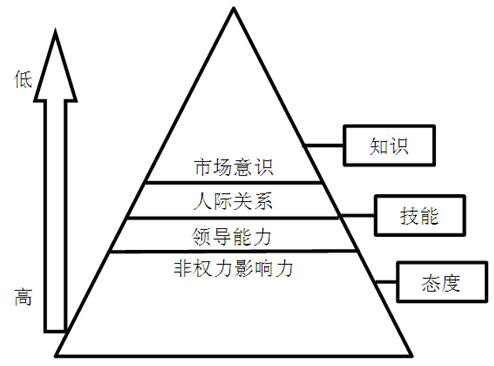 因素四“市場意識”中最重要的是創(chuàng)新與技術(shù)應(yīng)用,其次為授權(quán)和制定戰(zhàn)略。市場經(jīng)濟(jì)條件下,具有戰(zhàn)略眼光,不斷創(chuàng)新才能利于競爭的不敗之地。模型中勝任力的四個方面,對應(yīng)勝任力理論分析,“態(tài)度”位于最基礎(chǔ)層面,排第一位,是核心勝任特征,其次是“技能”,只是在此模型中為隱含性的,“市場意識”位于最外層。從冰山模型看,第一層非權(quán)力影響力為水下部分的內(nèi)隱只是最重要,其他能力為外顯層面在其后。
