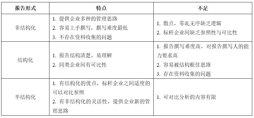 標(biāo)桿企業(yè)研究報告按照結(jié)構(gòu)形式可以分為非結(jié)構(gòu)化(案例研究)、結(jié)構(gòu)化、半結(jié)構(gòu)化三種類型,每種類型的報告均有自己的特點與適用范圍,實施標(biāo)桿企業(yè)研究的企業(yè),可以結(jié)合本單位的實際需要撰寫,各種類型報告的比較如下表所示。