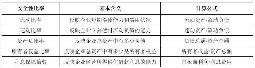 表2:企業(yè)安全性指標(biāo)